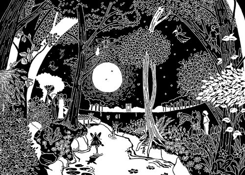 そして、私の中に、あるイメージが湧き上がり、それが物語となって周り燈籠のように動き始めた。それがこの物語の出発点である。キリスト教以前のヨーロッパはケルトの文化に覆われていた。その文化は樹木を崇拝し、太陽と月を信仰する社会の下で成り立っていた。そんな時代のイメージが愛おしくもせつなく胸に迫ってくるのは現代という時代性に無縁ではない。そんな感慨を胸にスタートしたのがこの物語である。