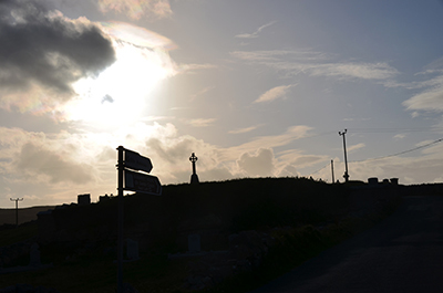 イニシュモアの夕暮れ時の丘の上のサンクロス