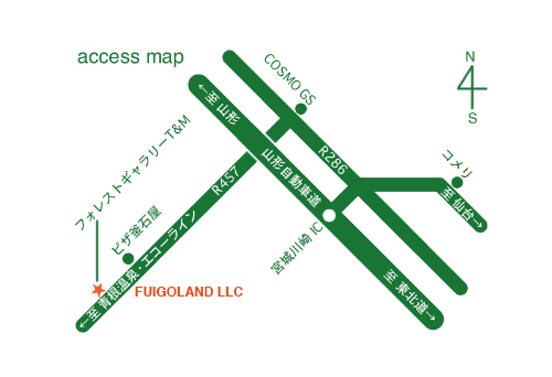 宮城蔵王の山裾にある小さなログキャビン、これがFUIGOLANDの本拠地です。自然豊かなこの場所は野鳥やニホンリスも多く生息し、早朝には木立のリスの駆け回る姿を見ることができます。夜に空を見上げれば満天の星を見ることができます。ログキャビンは小さなギャラリーT&Mを併設しており18世紀から19世紀の主にイギリスの動植物と風景の手彩色の版画を展示しています。そして、12月のクリスマスにはバイオリン、フルート、ピアノによるコンサートの会場となっています。